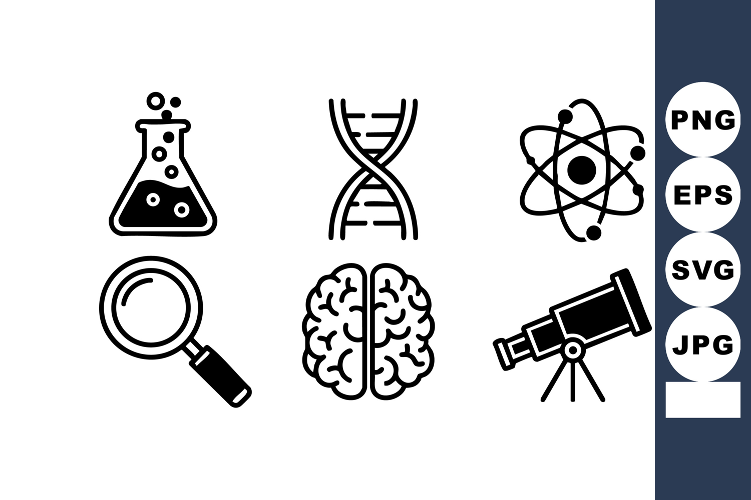 Vector Icons Brain Science Glass Atom Dna Flask Telescope Magnifying