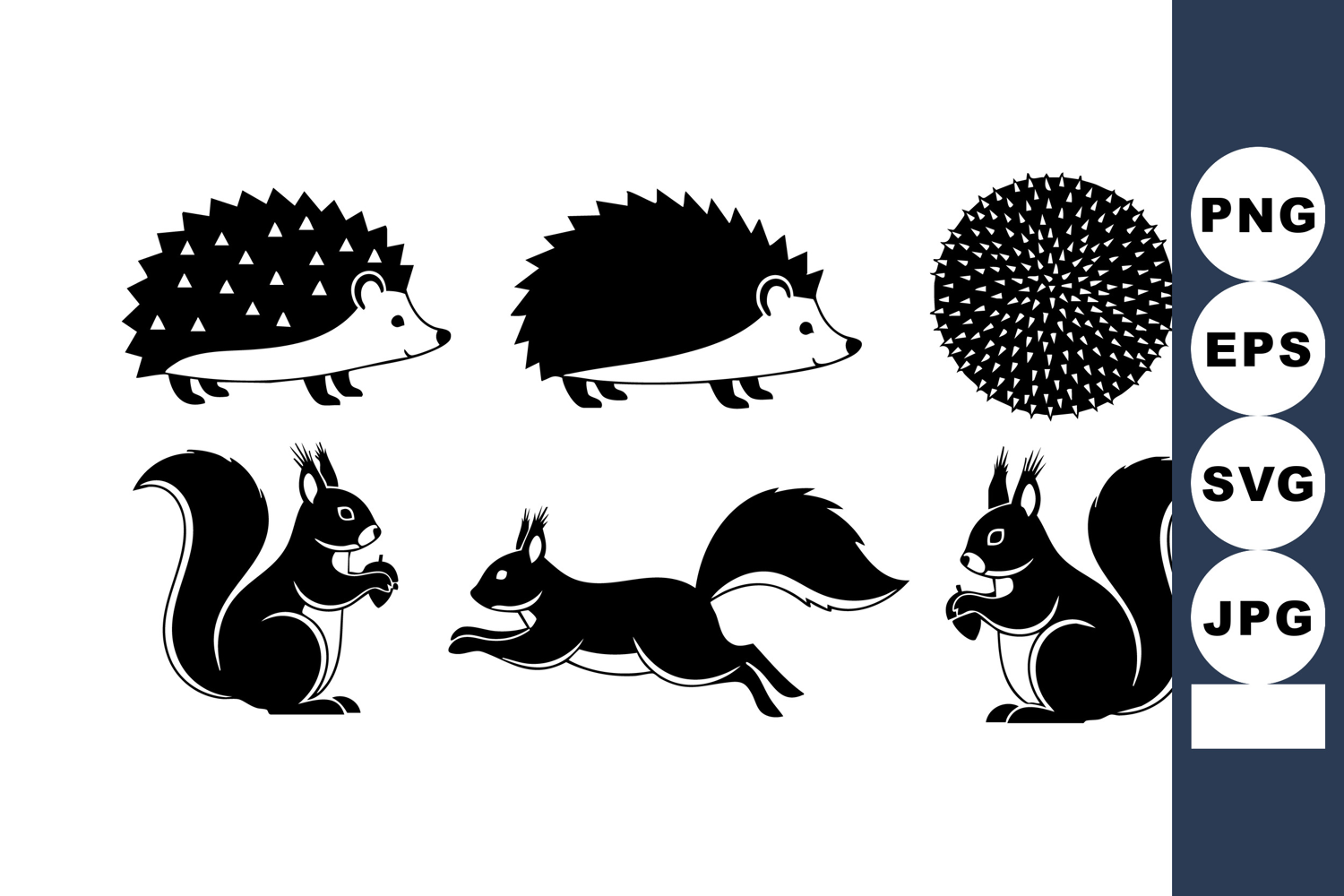 Illustration Animal Vector Black Nature Forest Silhouette Wildlife Squirrel Hedgehog