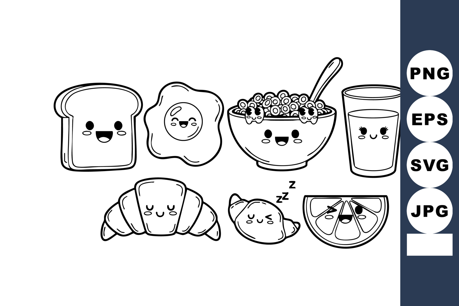 Cute breakfast food cartoon characters with toast egg cereal example image 1
