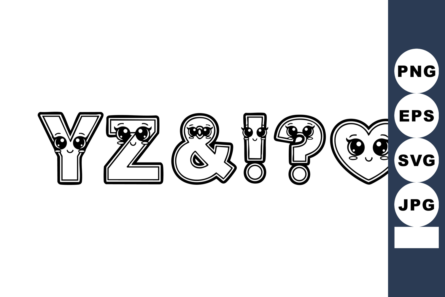 Cute kawaii style letters Y Z ampersand exclamation question example image 1