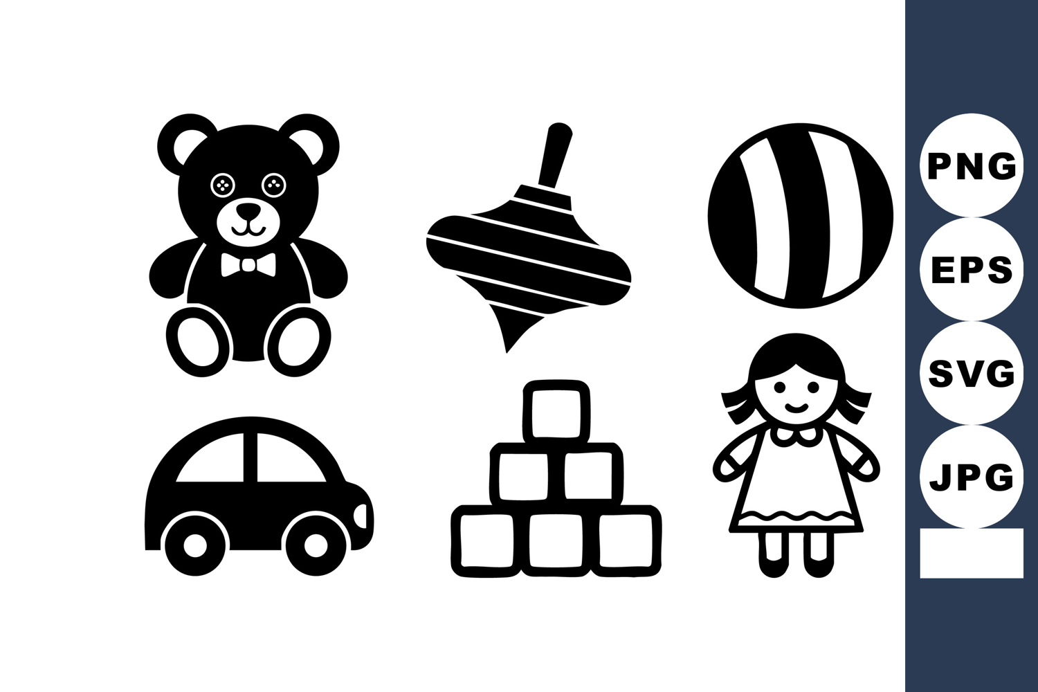 Toy icons including teddy bear, spinning top, ball, car example image 1