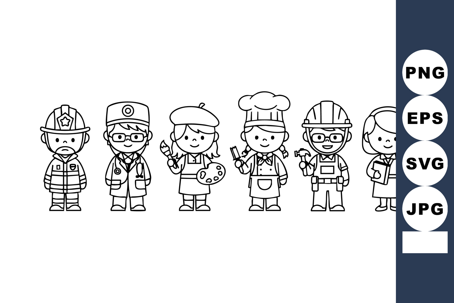 Illustration Vector Teacher Engineer Doctor Chef Professions Firefighter Artist Lineart