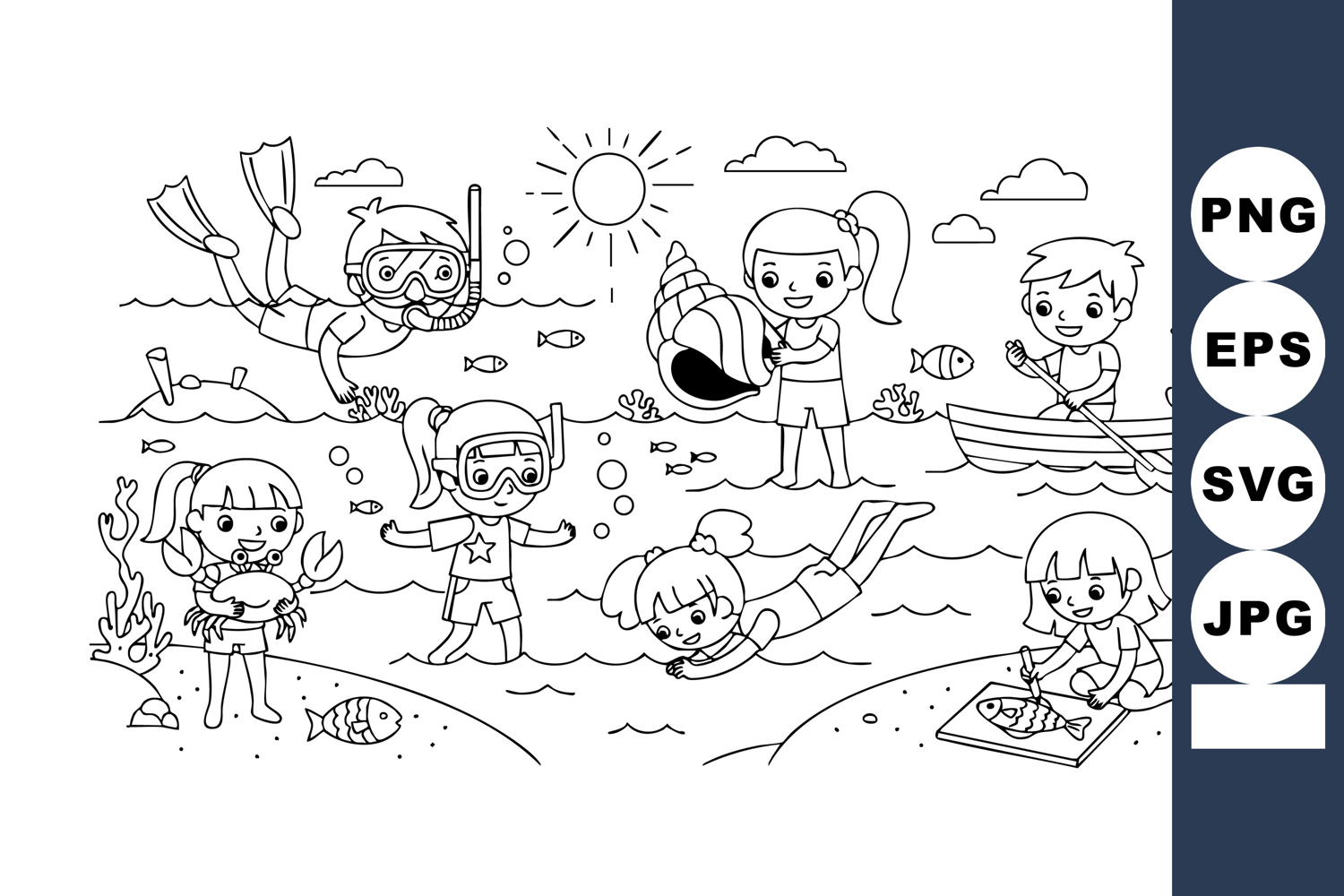 Children Playful Summer Sun Water Beach Drawing Snorkeling Swimming Fishing