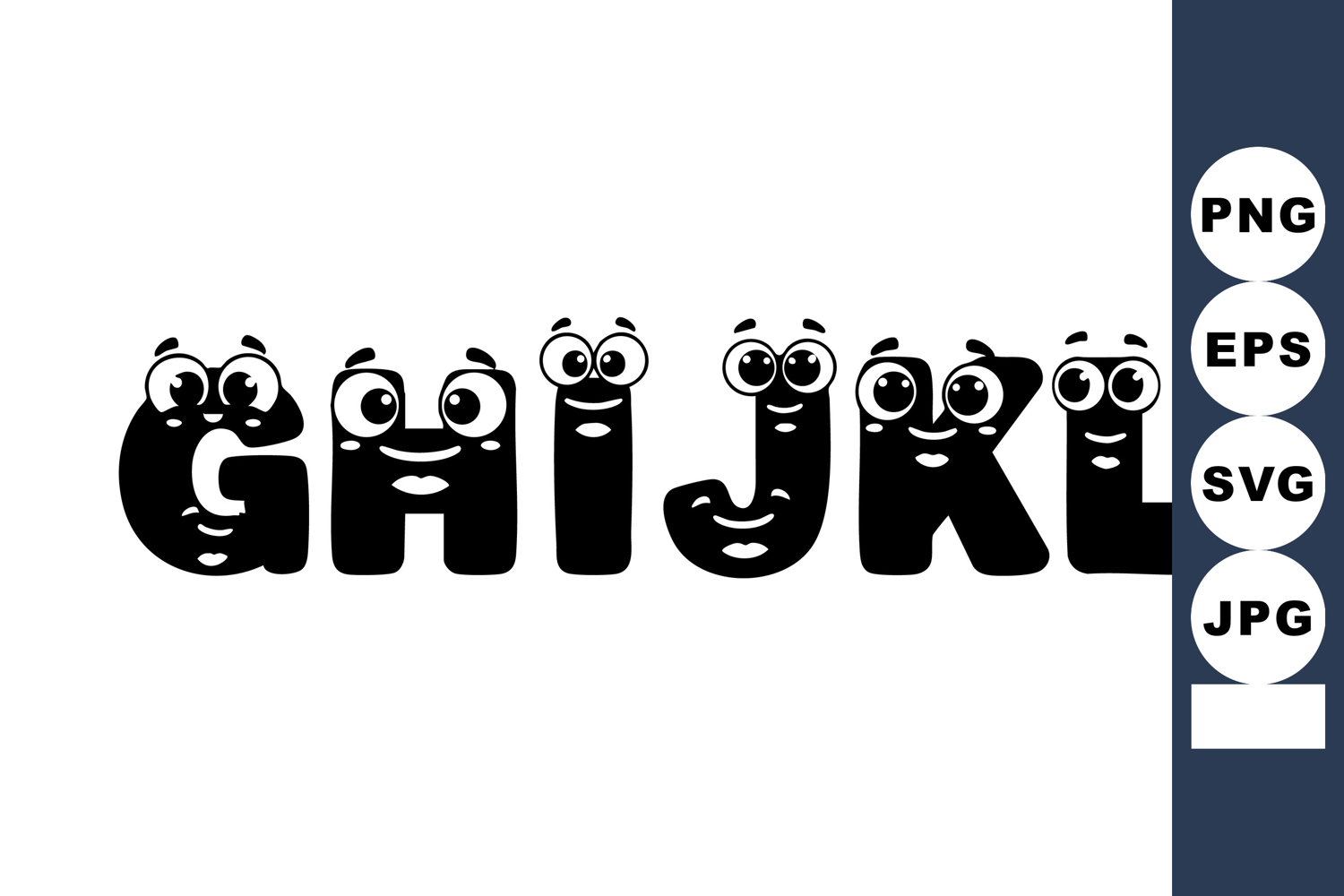 Alphabet Letters G to L with Funny Eyes and Cartoon Style Ve example image 1