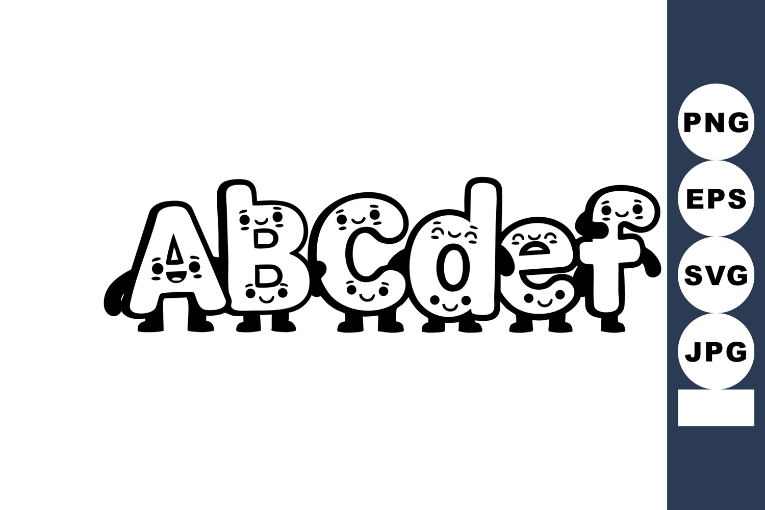 Children Cartoon Playful Letters Cute Design Smile Happy Alphabet Abcdef