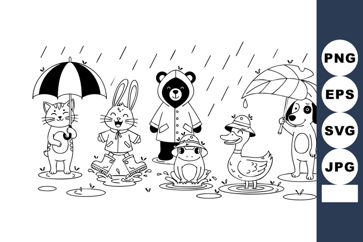 Bear Cat Rabbit Duck Dog Frog Rain Umbrella Puddle Raindrop