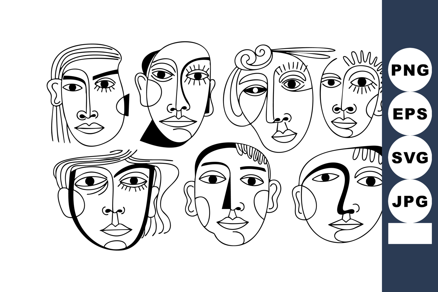 Illustration Line Vector Art Creative Drawing Abstract Face Continuous Faces