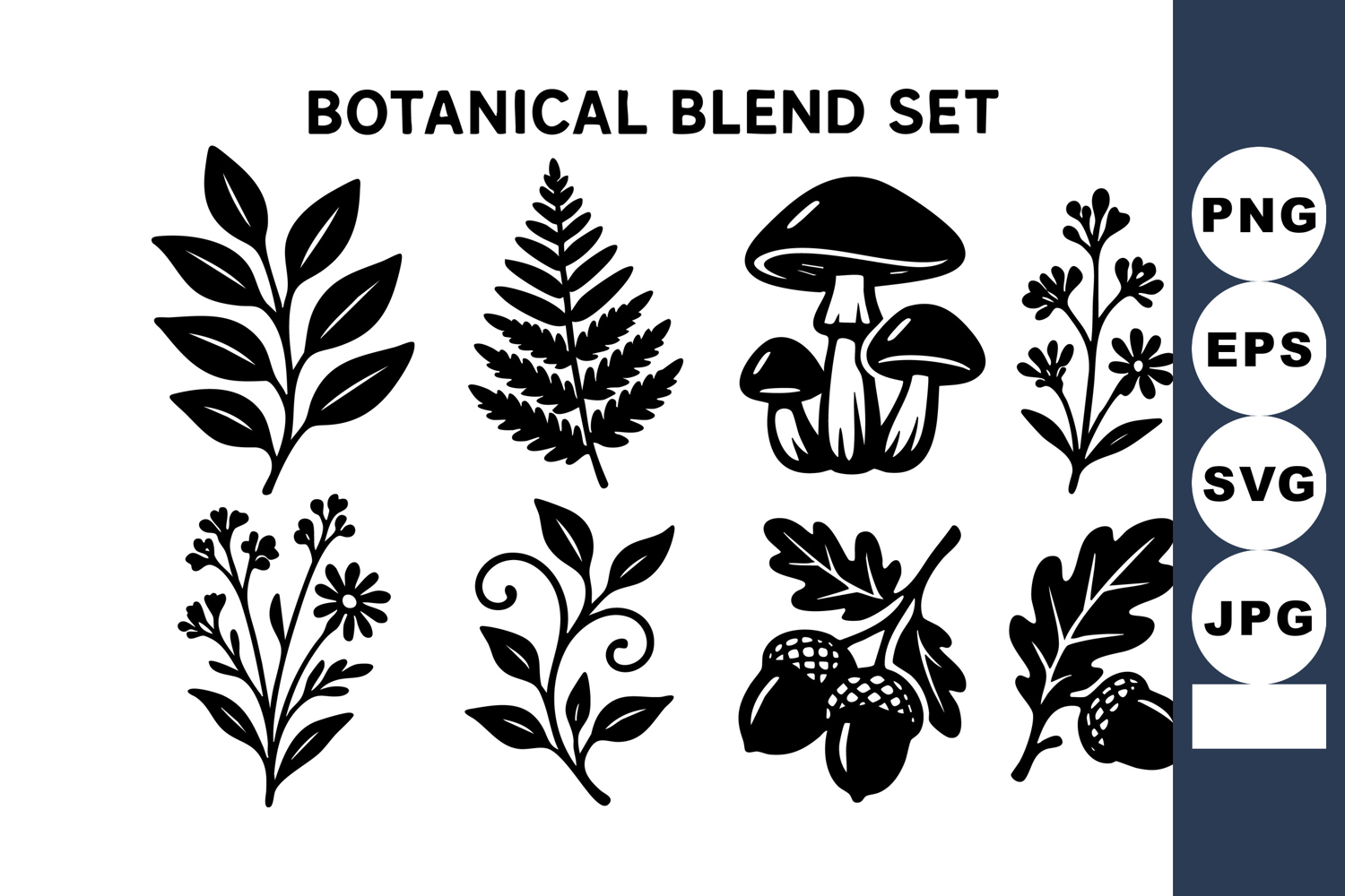 Nature Leaf Flower Silhouette Set Botanical Mushroom Blend Acorn Fern