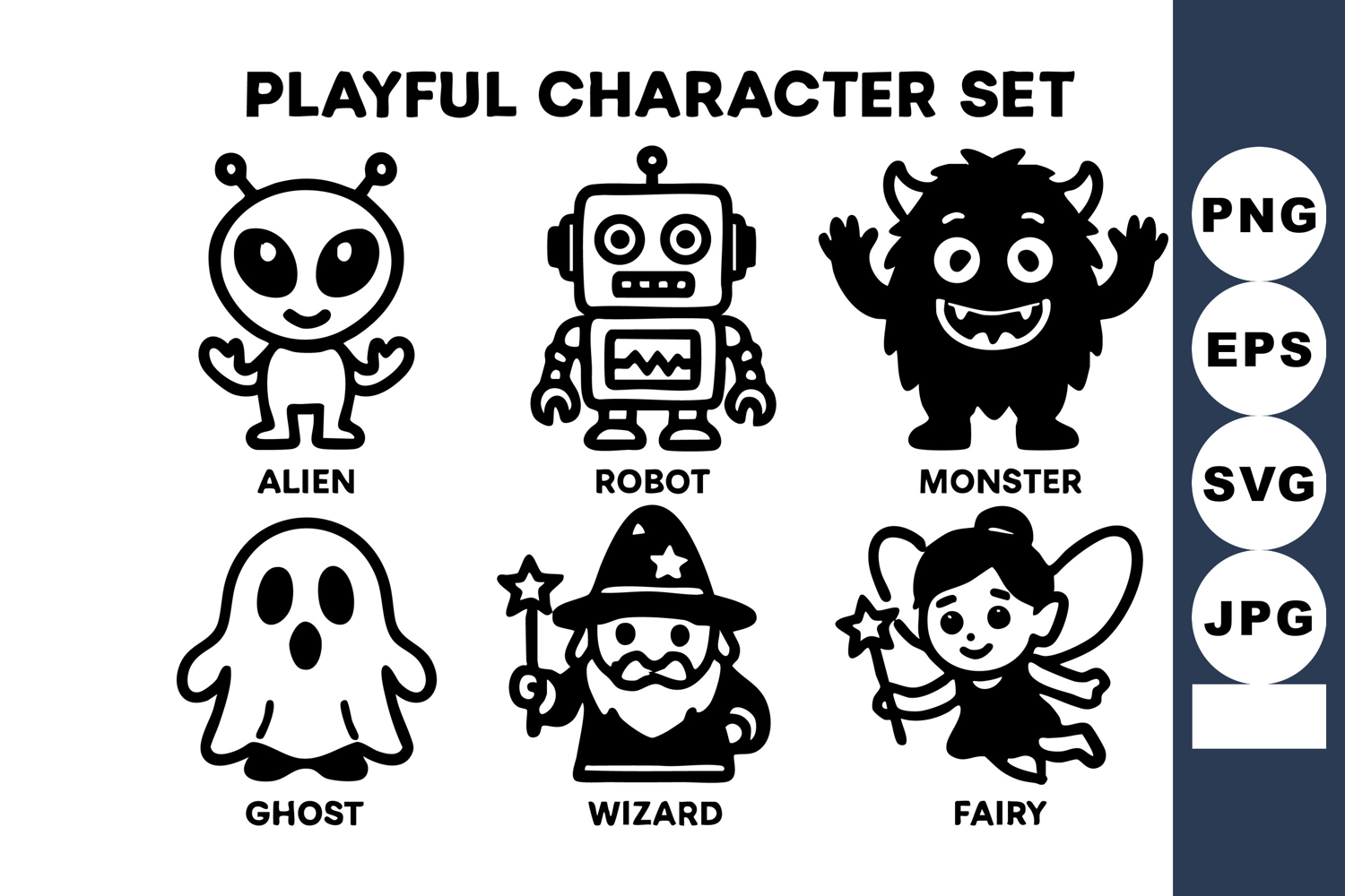 Character Cartoon Playful Fairy Set Ghost Monster Alien Robot Wizard
