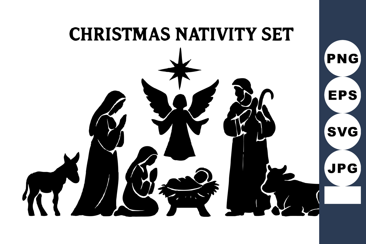 Family Vector Christmas Silhouette Set Star Angel Nativity Mary Holy