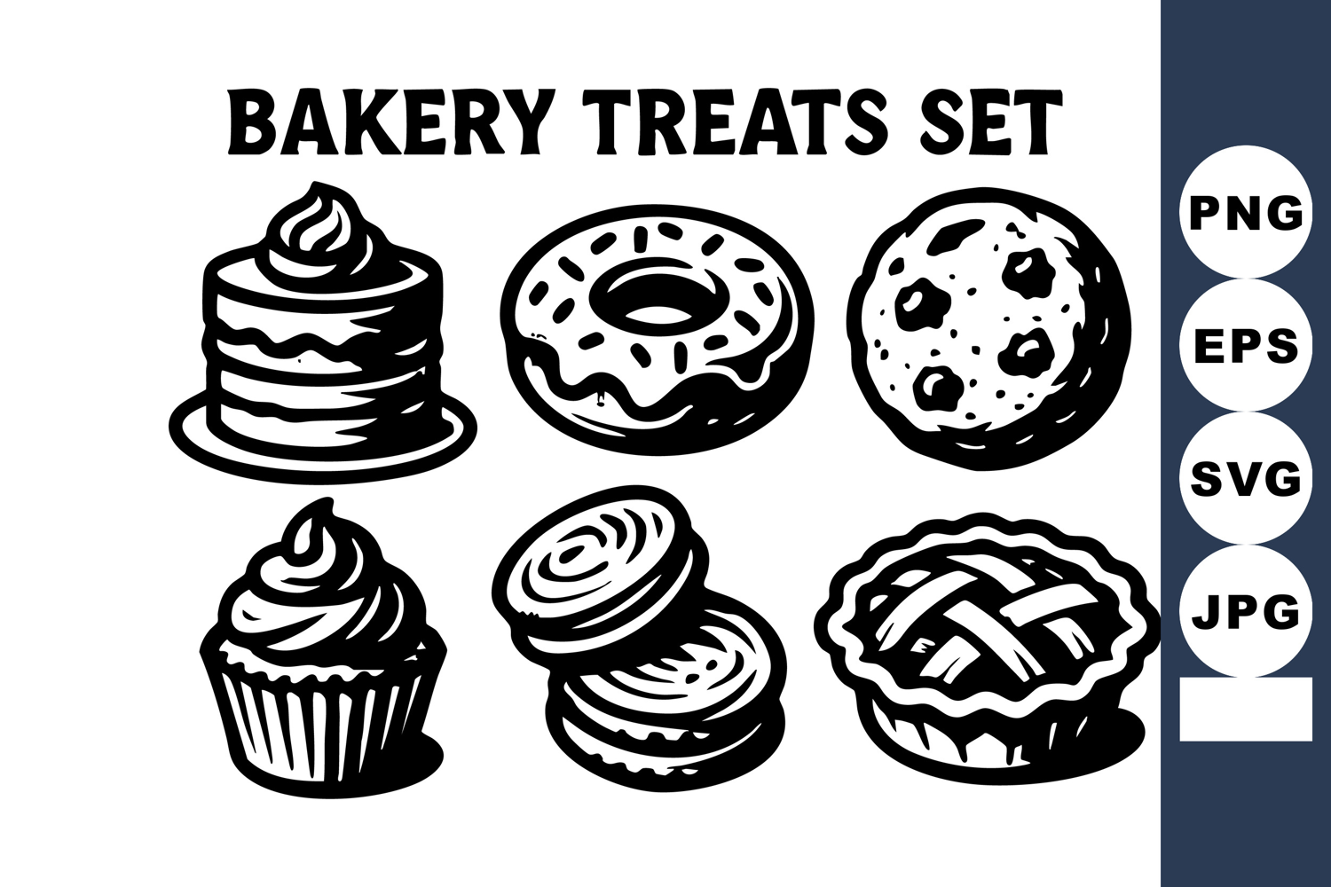 Bakery treats including cupcake donut cookie pancake pie example image 1