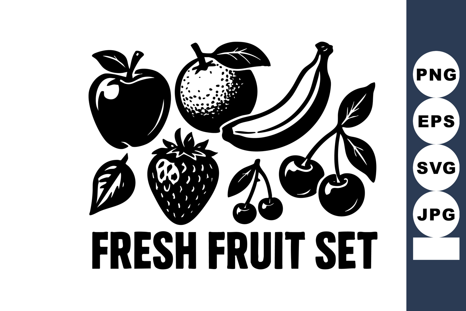 Fruit Vector Black Fresh Orange Strawberry Banana Apple White Cherry
