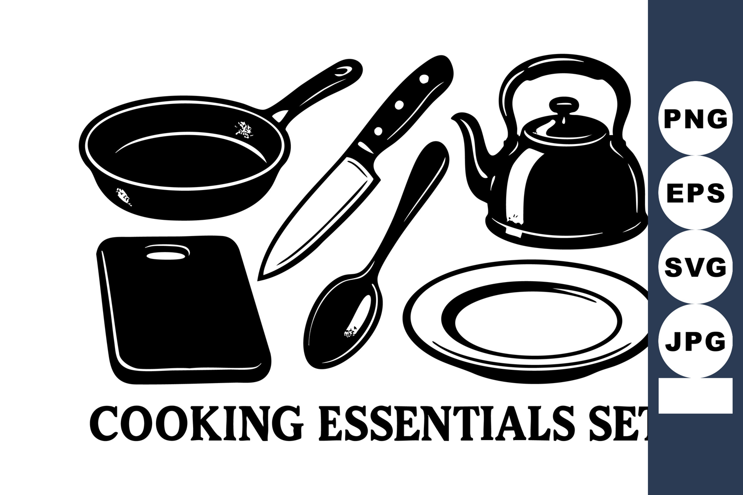 Cooking essentials with frying pan knife spoon kettle pl example image 1