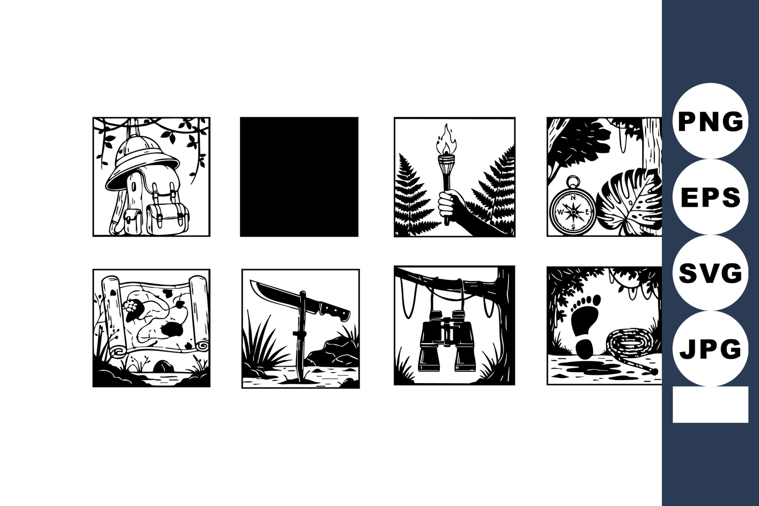 Vector Black Design Icons Adventure Compass Footprints Torch Binoculars Exploration