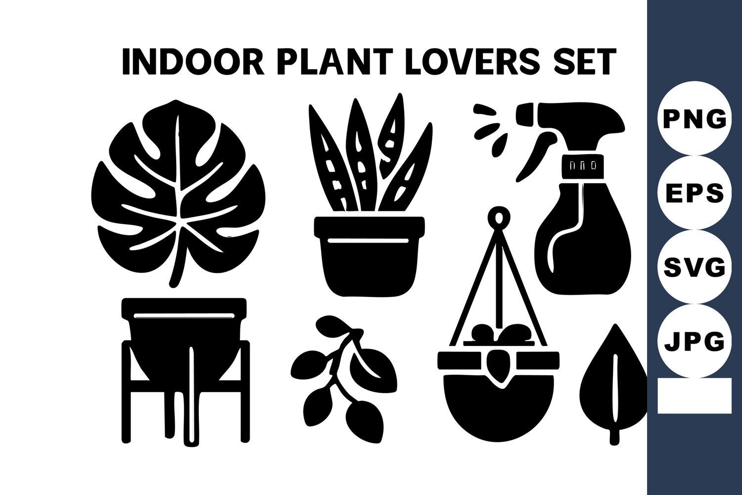 Indoor plant lovers with potted plants, leaf icons, and spr