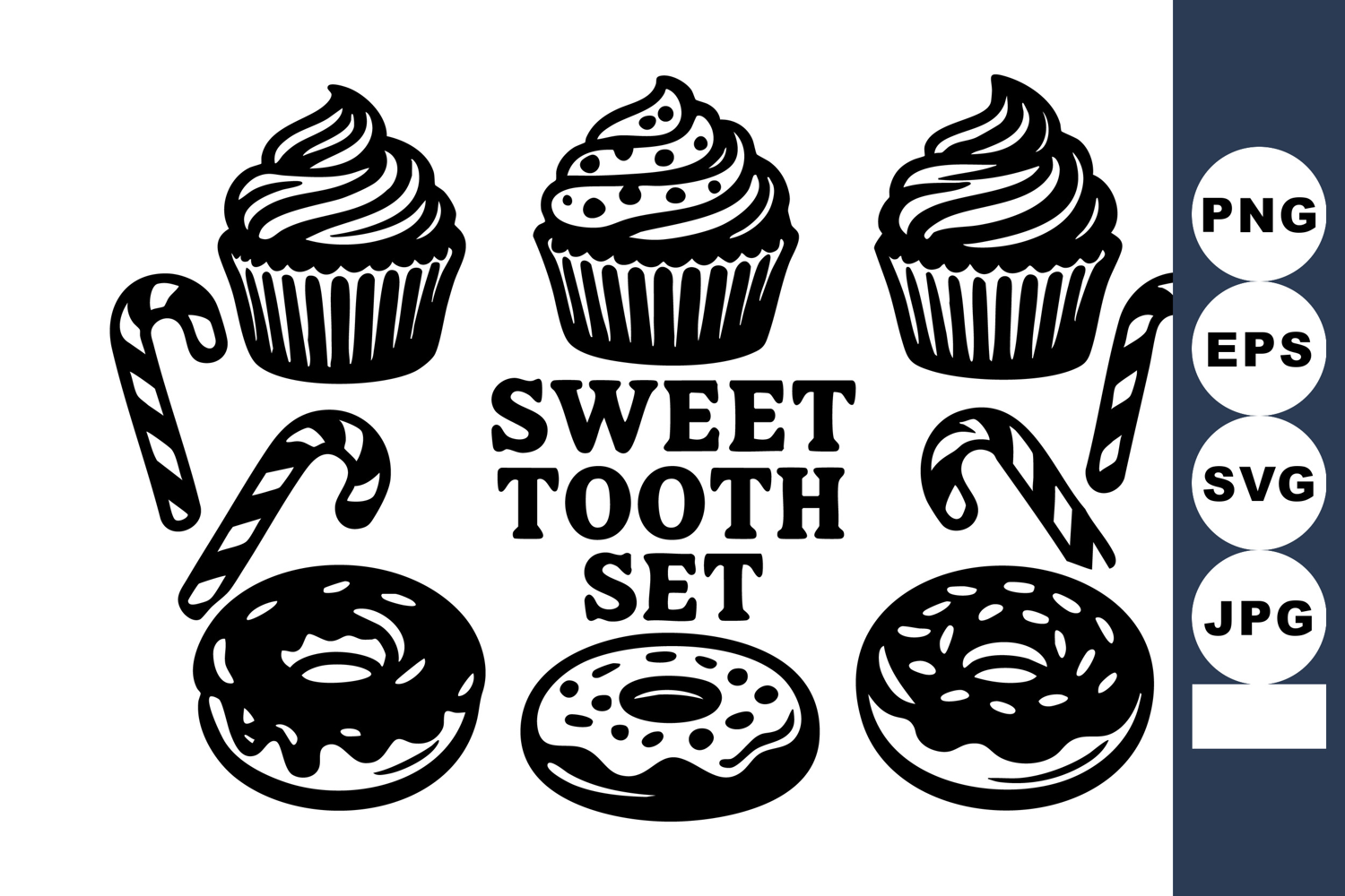 Sweet tooth with cupcakes donuts and candy canes in black a example image 1