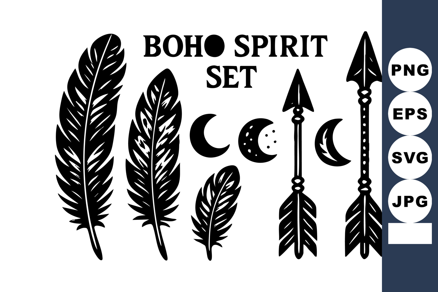 Illustration Vector Black Design Boho Arrow Feather Moon Spirit Crescent