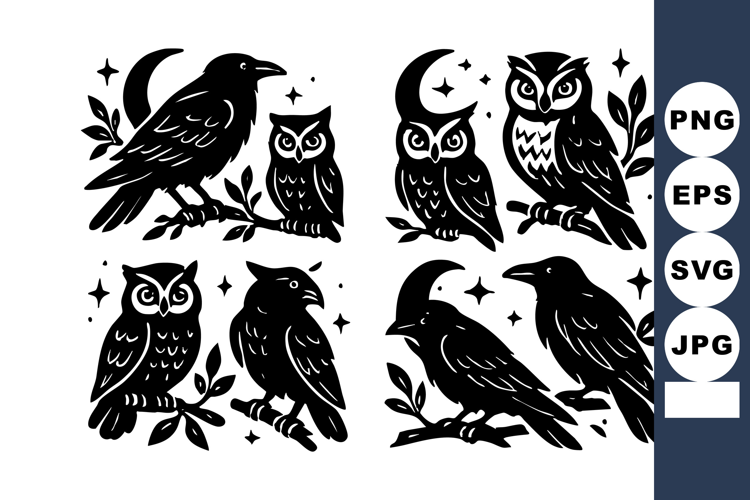 Similar Design Products to Black silhouette vector of owls and crows perched on branche