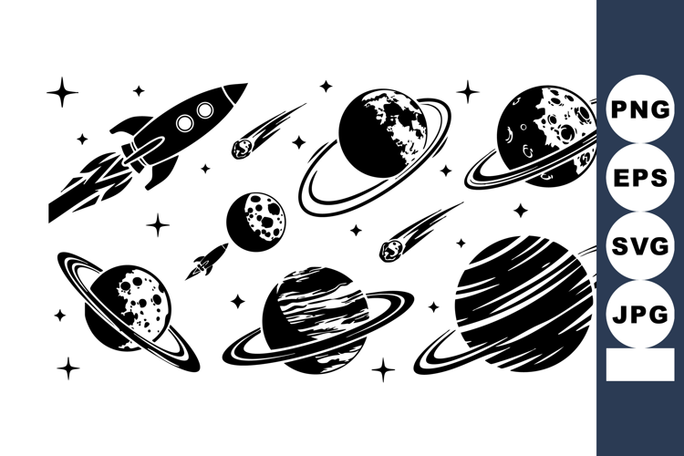 Space-themed vector of planets moons rockets comets and sta example image 1