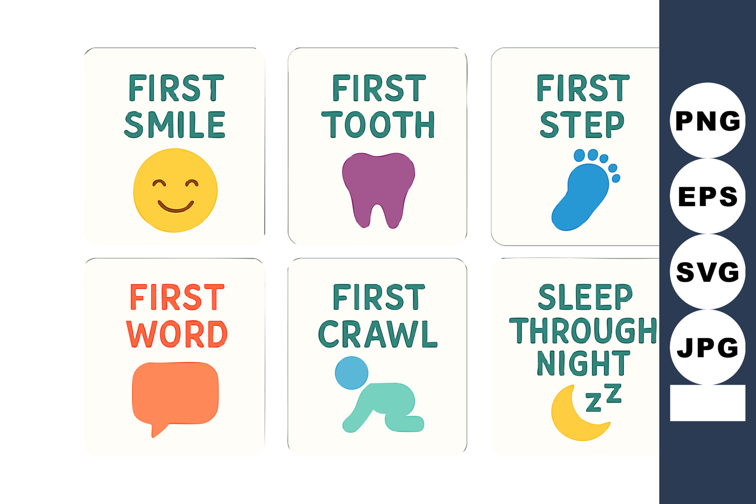Icon Baby Smile Word Tooth Night Milestone Sleep Step Crawl