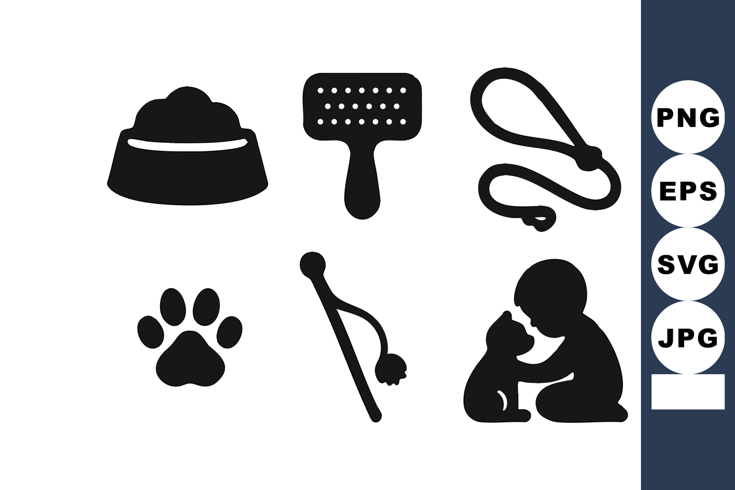 Pet care icons including food bowl, brush, leash, paw print example image 1