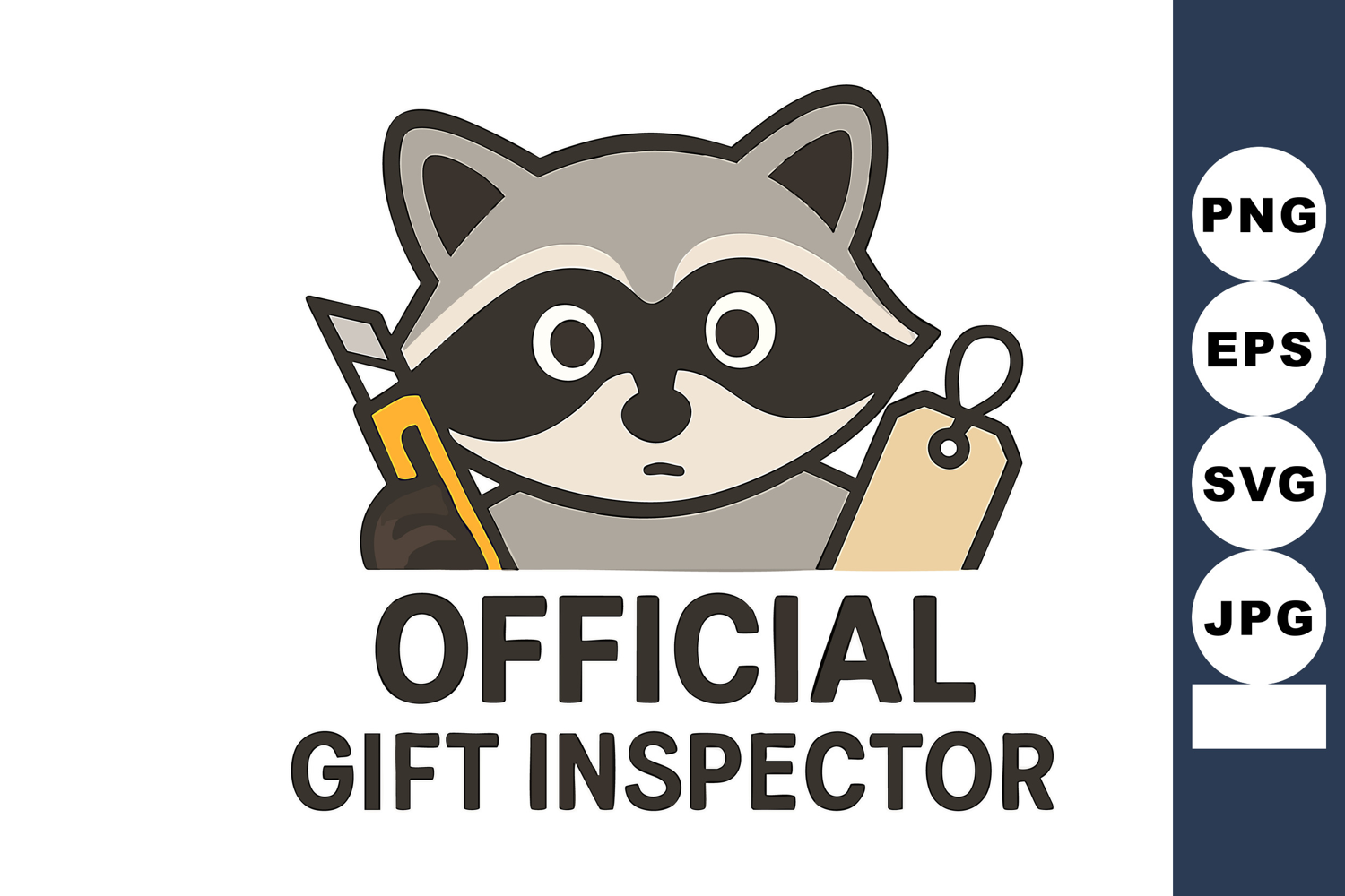 Raccoon holding knife and tag official gift inspector cute a