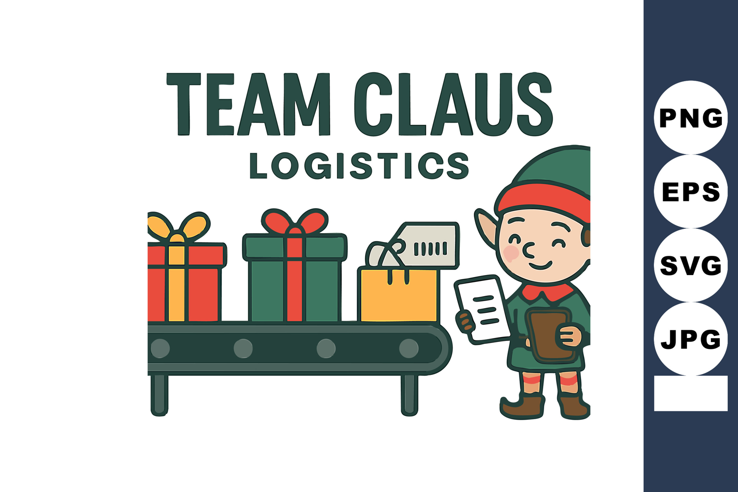 Team Claus logistics illustration with elf worker and colorf