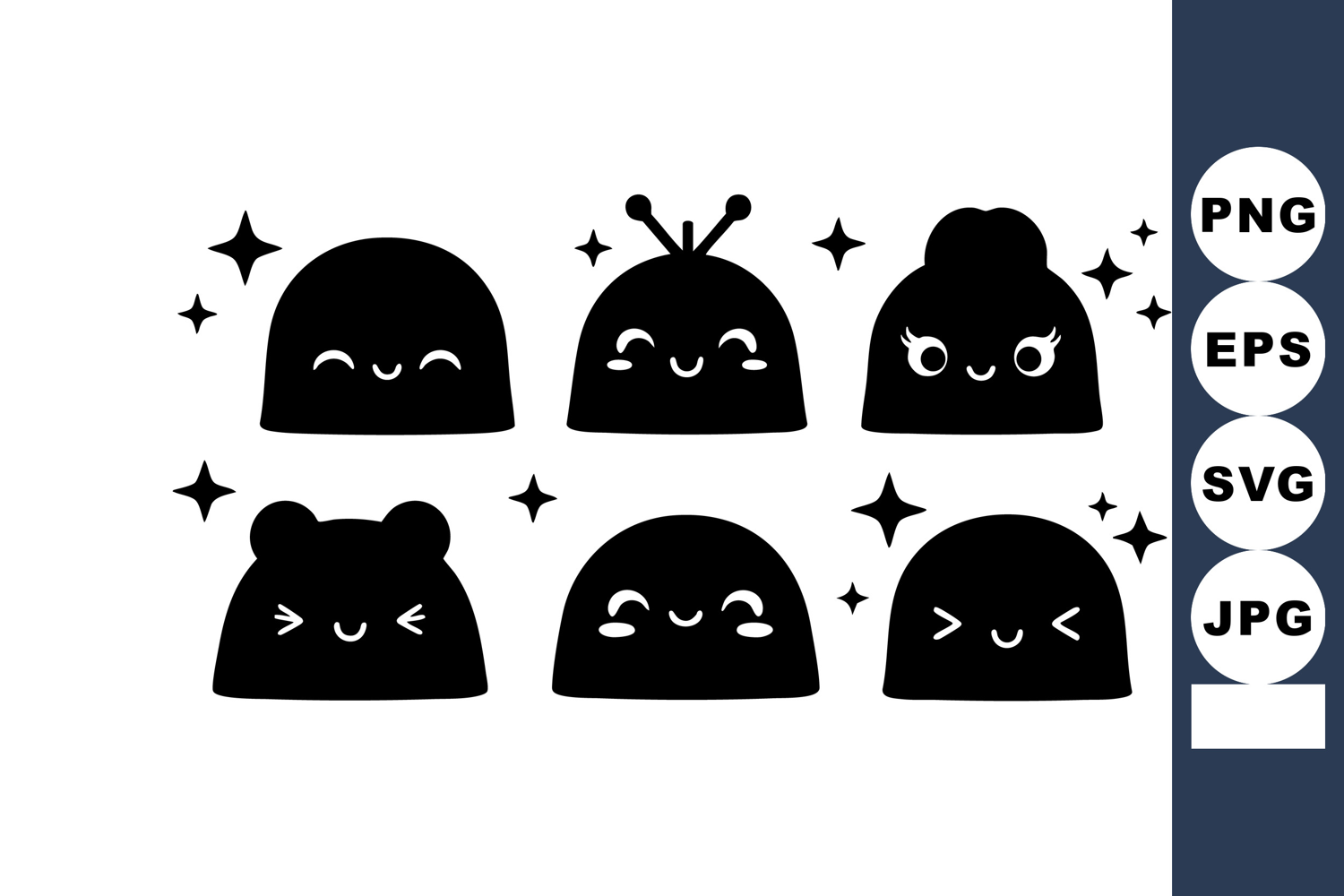 Character Cartoon Animal Black Silhouette Face Star Kawaii Expression Sparkling
