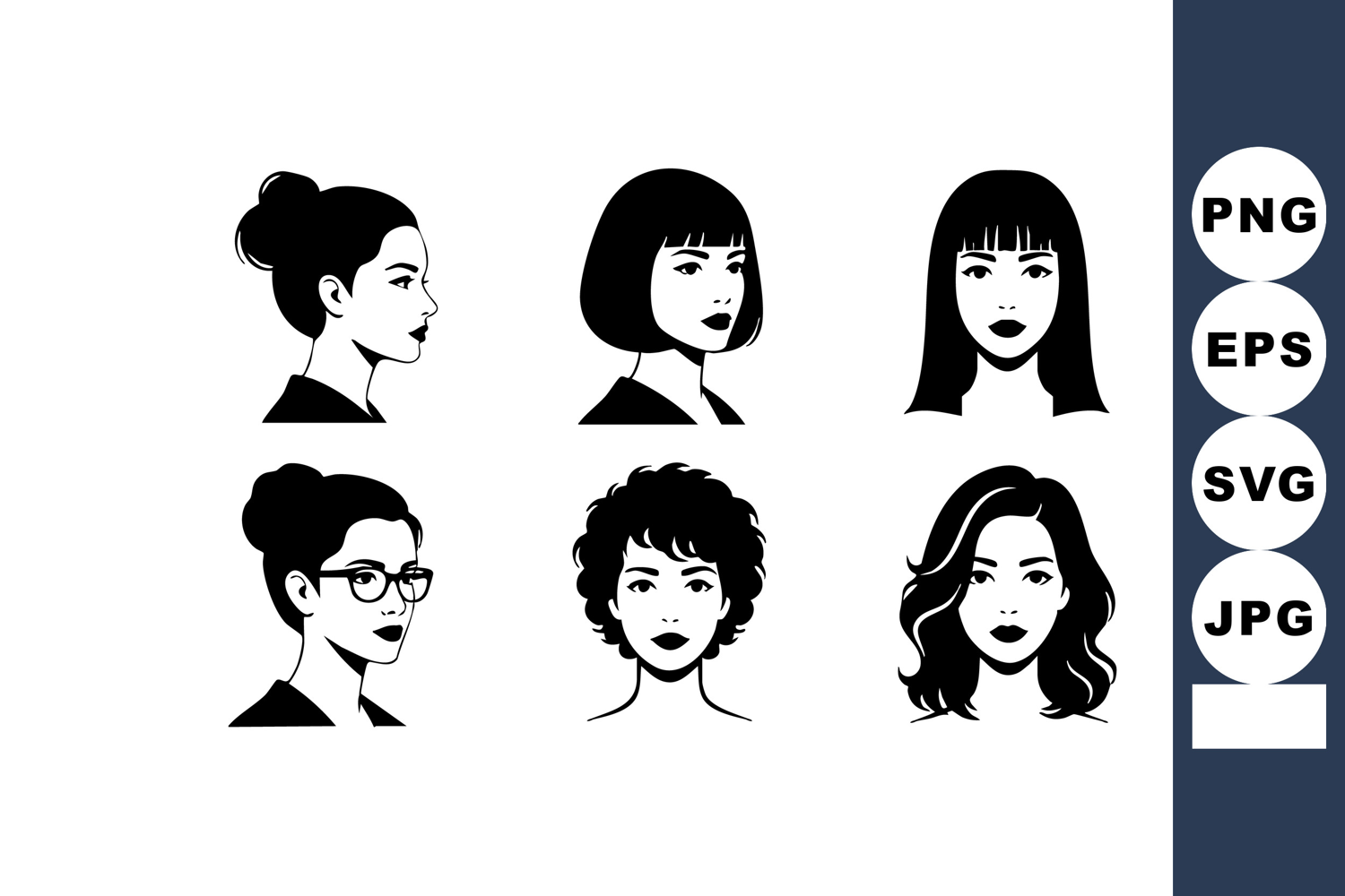 Women portraits vector featuring diverse hairstyles and