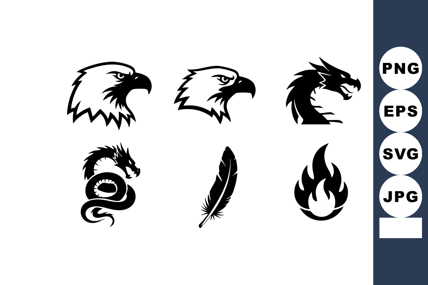 Animal Icon Silhouette Head Feather Dragon Flame Snake Eagle Serpent