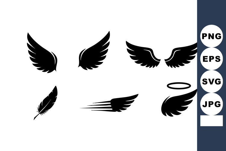 Icon Black Collection Silhouette Set Feather Wings Angel Wing Halo