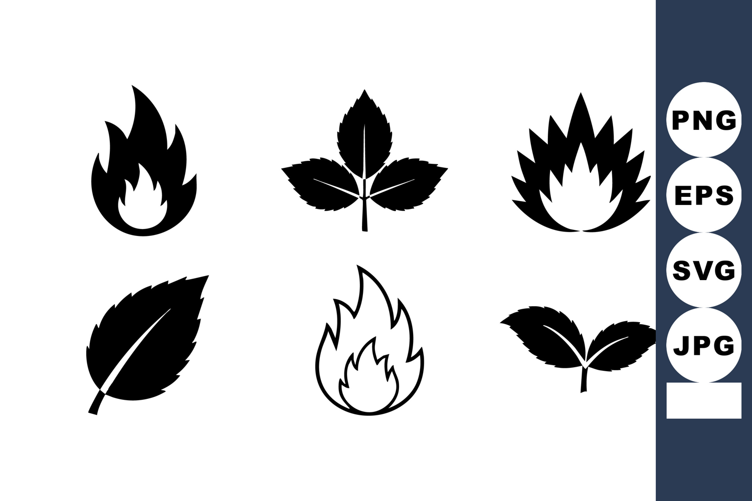 Symbol Icon Black Nature Leaf Set Ecological Fire Flame Environment