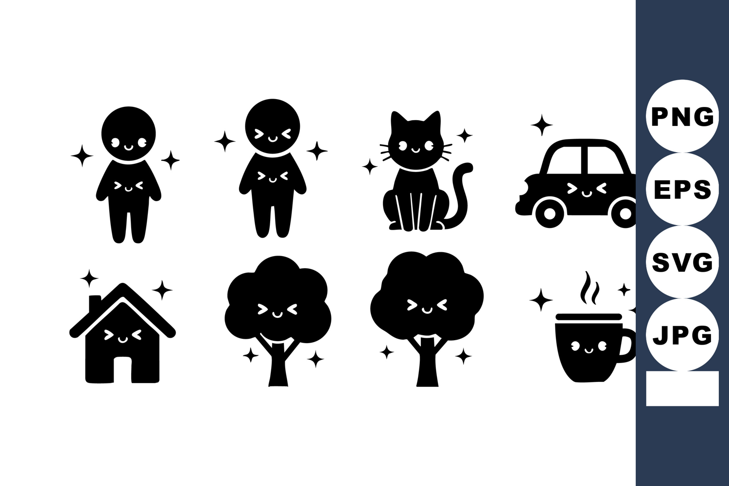 Clean Icon Coffee Tree Cat Person Car House Sparkle Cup