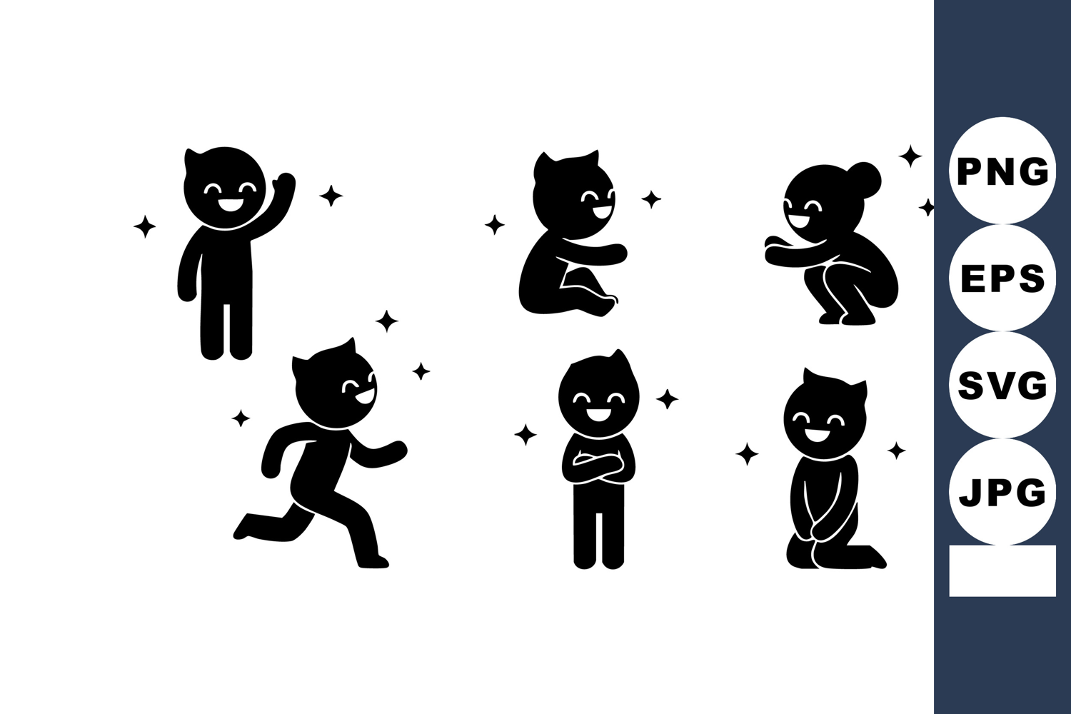 Character Cartoon Animal Playful Black Silhouette Cat Pose Expression Gesture