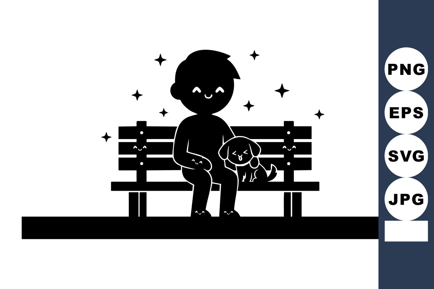 Similar Design Products to Boy sitting on park bench with puppy under stars vector scen