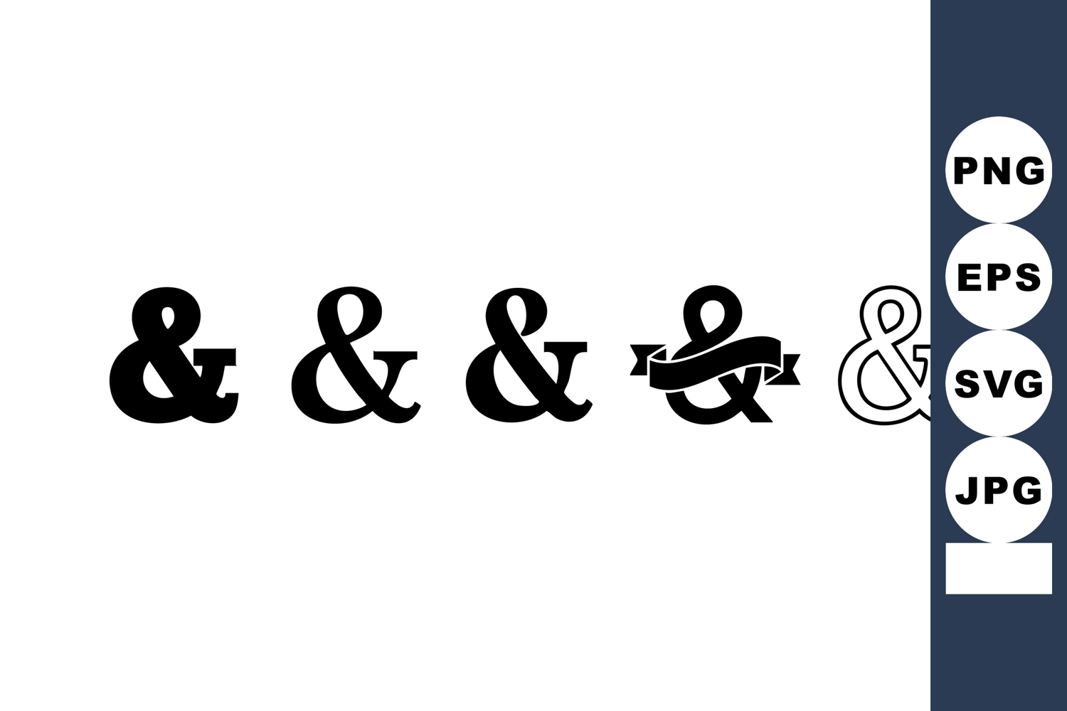 This vector shows five ampersand symbols in various font styles, black and white, suitable for typography or graphic design, simple mood.