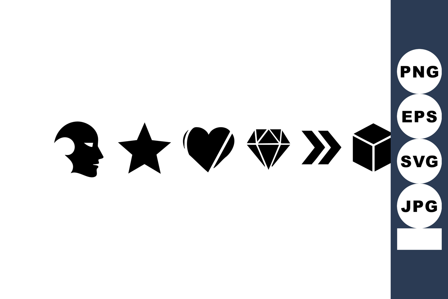 Minimalist black icons including human face star heart diamo