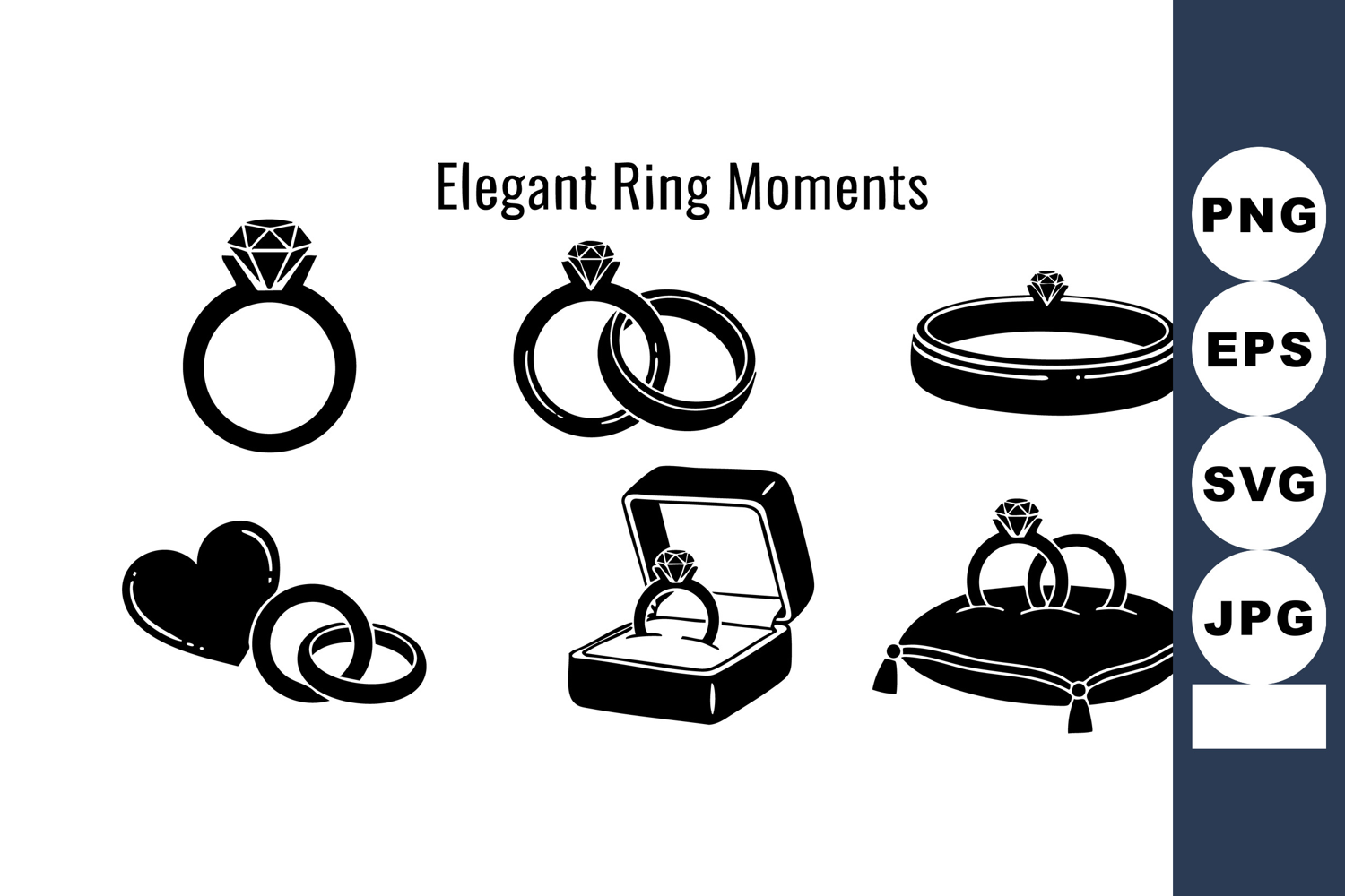 Elegant black silhouette wedding rings and engagement rings