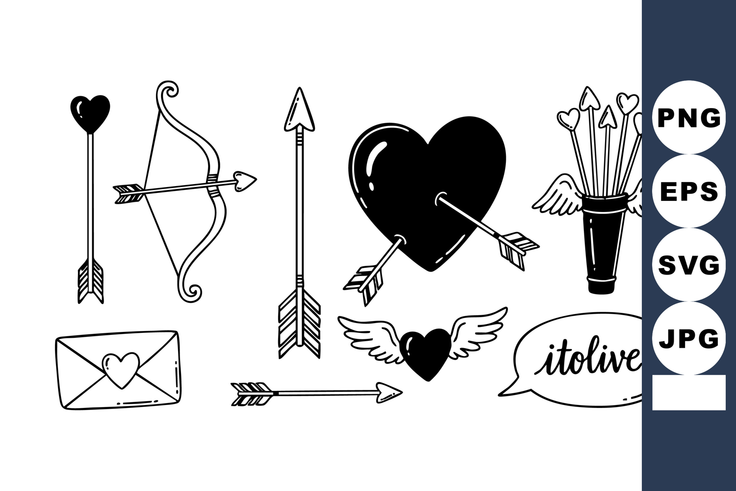 Valentine themed black and white love arrows heart wings env example image 1