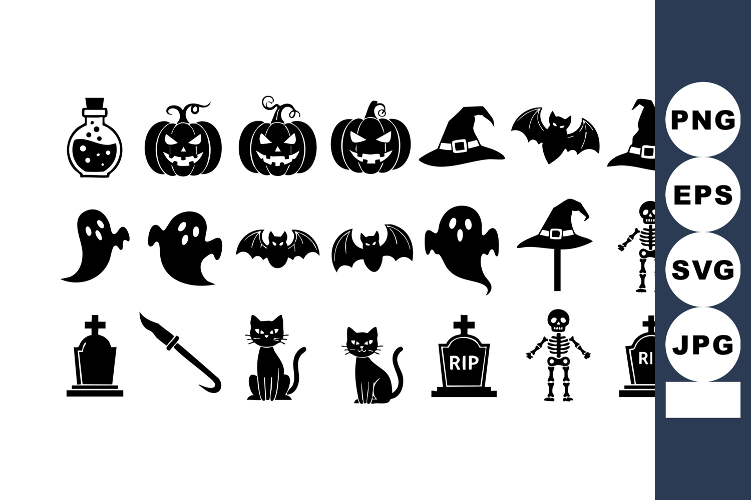 Vector Halloween Icons Pumpkins Skeletons Bats Witches Hats Ghosts Tombstones