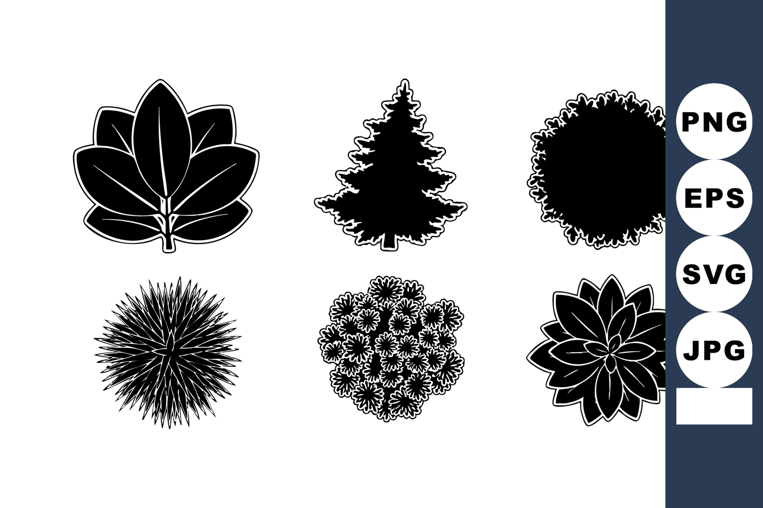 Similar Design Products to Six Black Silhouette Tree and Plant Leaf Shapes Vector Illus