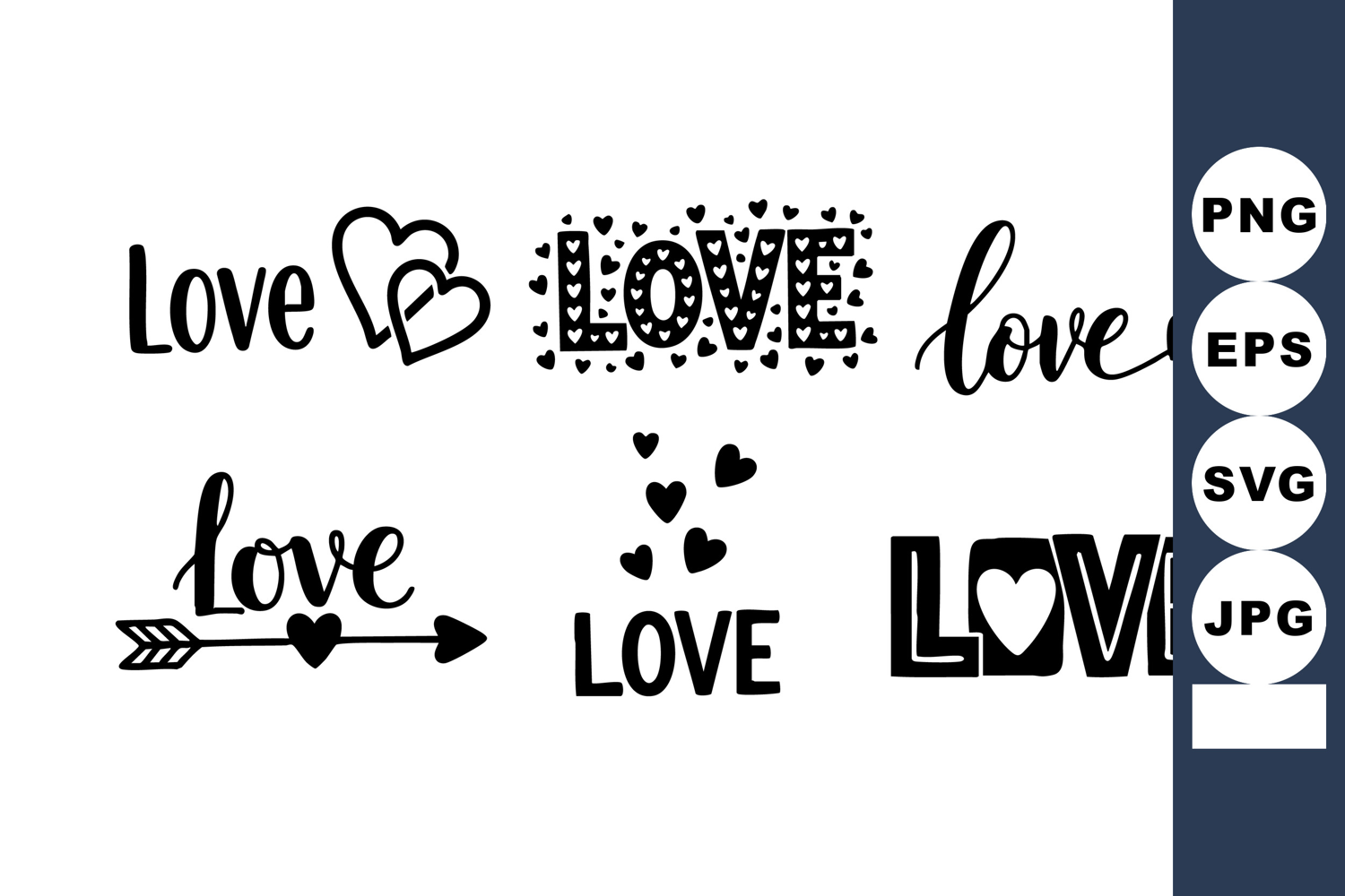 This vector features various love typography styles with hearts and arrow icons, perfect for romantic or valentine themes, charming mood.