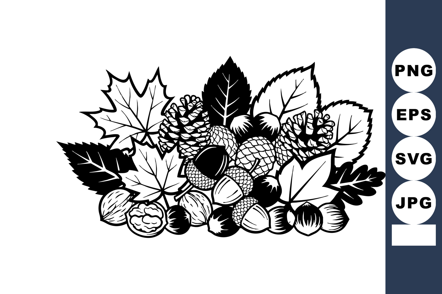 Similar Design Products to Autumn Leaves Acorns and Pinecones Black and White Vector Il