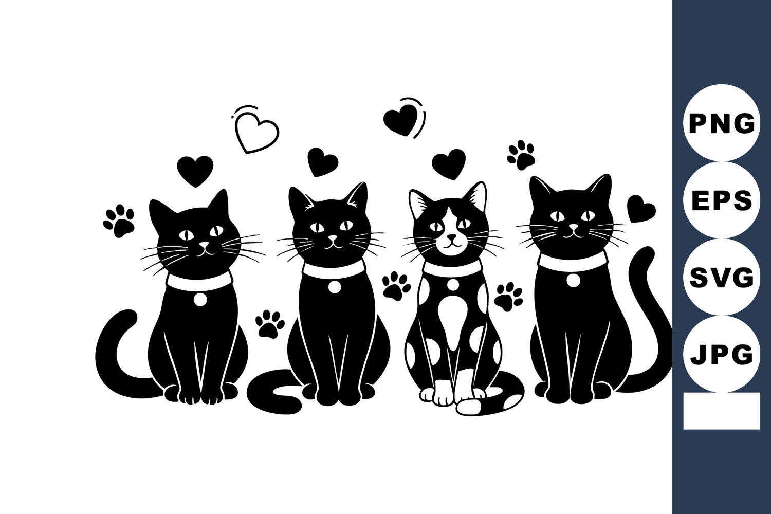 Similar Design Products to Four black and white cats with hearts and paw prints vector