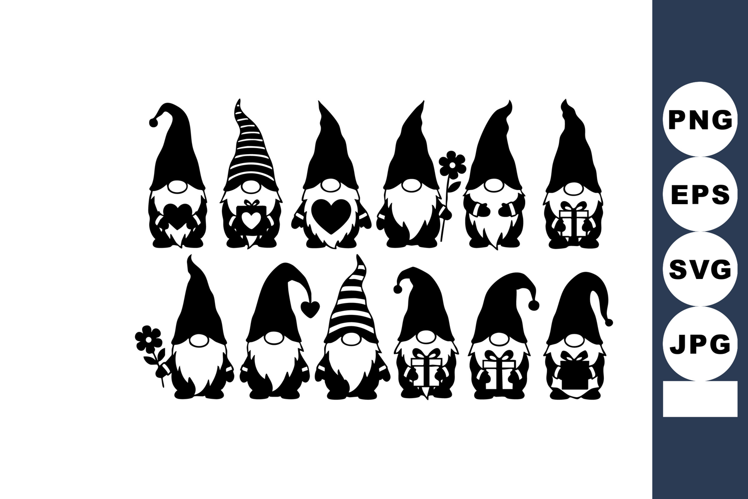 Black silhouette gnome icons with various hat designs and gi example image 1