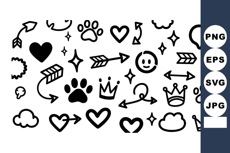 Symbol Love Print Doodle Sketch Heart Crown Arrow Cloud Paw