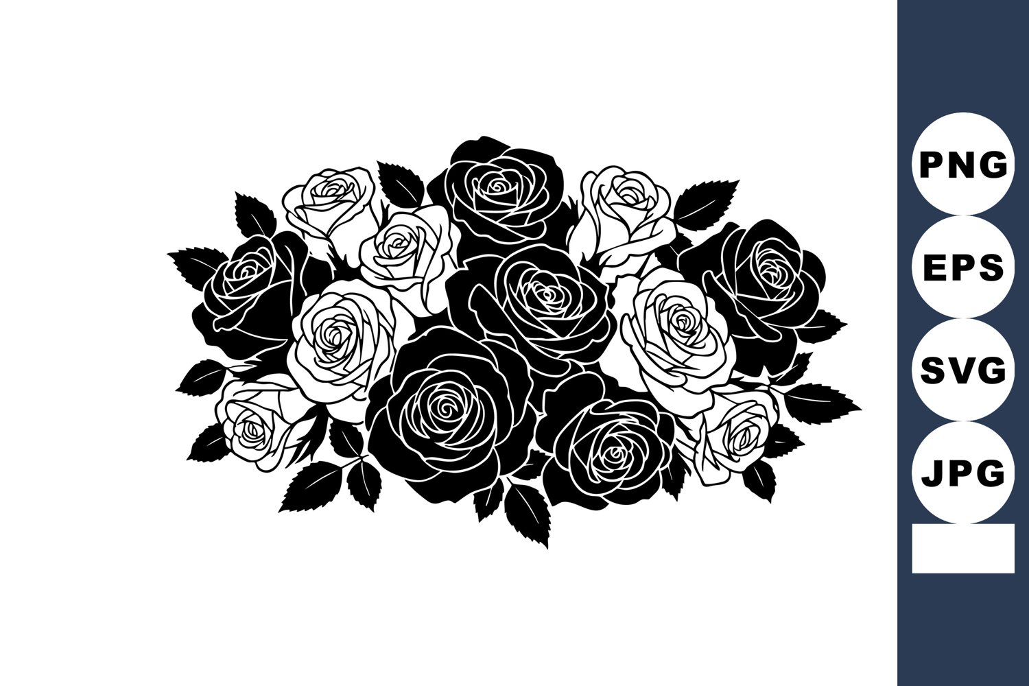Black and white rose bouquet vector with leaves floral decor example image 1