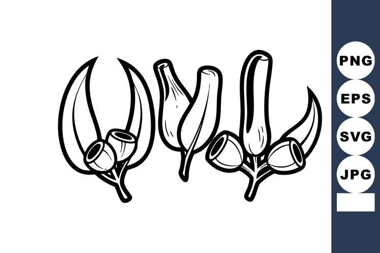 This vector shows cotton plant seed bolls and dried capsules in black and white line art style, presenting natural botanical elements. Calm.