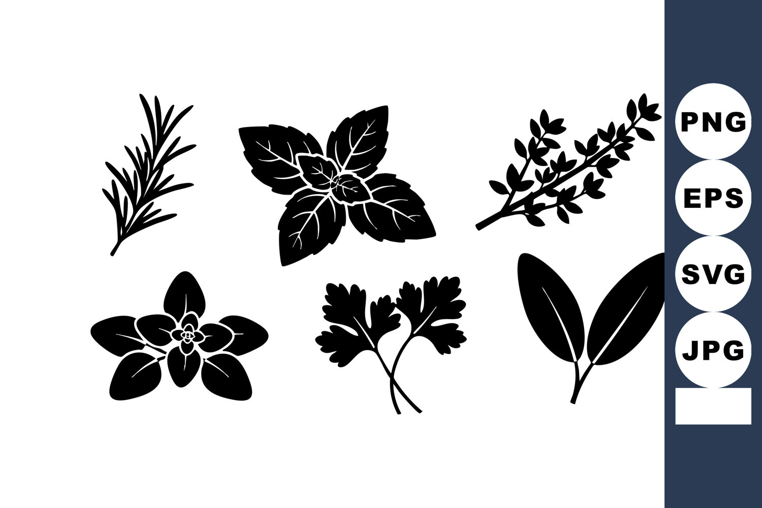 Silhouette of Various Culinary Herbs Vector with Rosemary Ba example image 1