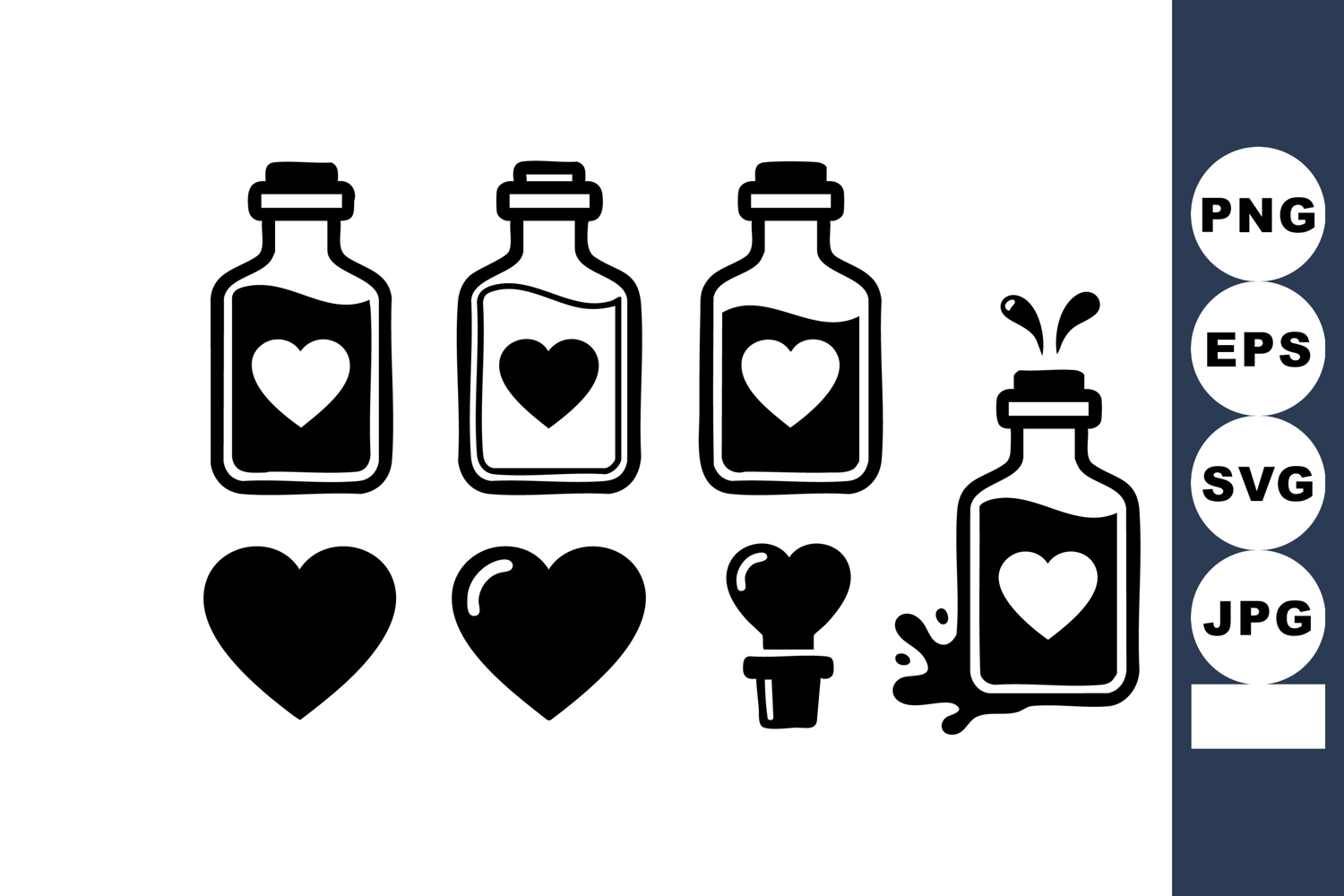 Heart symbols and love potion bottles with splash and cork v example image 1